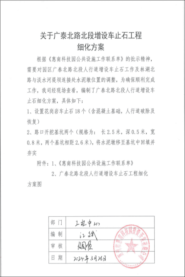 2.工程名稱:廣泰北路增設(shè)車止石工程