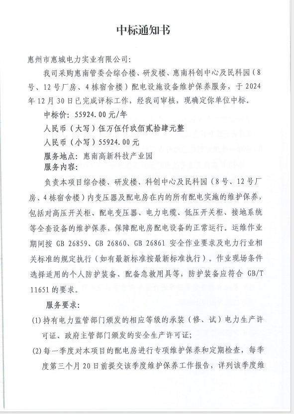【中標(biāo)通知】采購(gòu)惠南管委會(huì)綜合樓、研發(fā)樓、惠南科創(chuàng)中心及民科園(8 號(hào)、12號(hào)廠房、4棟宿舍樓)配電設(shè)施設(shè)備維護(hù)保養(yǎng)服務(wù)