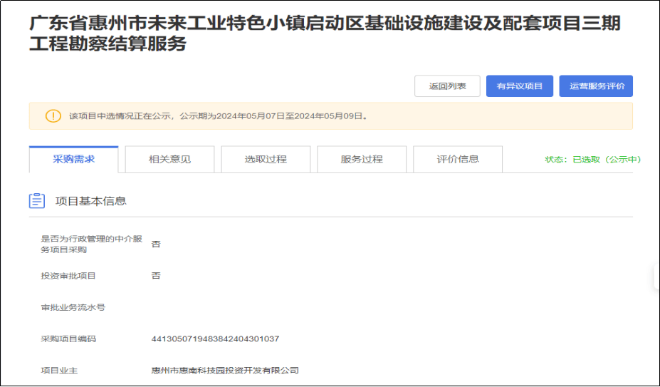 【公示】廣東省惠州市未來(lái)工業(yè)特色小鎮(zhèn)啟動(dòng)區(qū)基礎(chǔ)設(shè)施建設(shè)及配套項(xiàng)目三期工程勘察結(jié)算服務(wù)